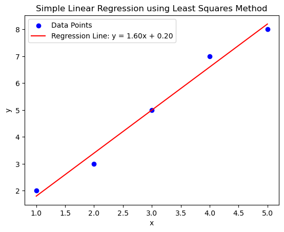 plt.title('Simple Linear Regression using Least Squares Method')